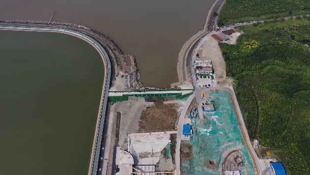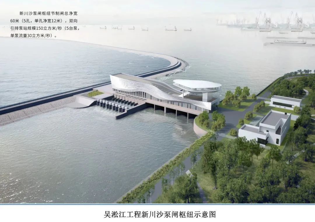 新川沙河与长江相连通,在这个位置建设的泵闸,将成为吴淞江与滚滚长江对接的“咽喉”,它是按照200年一遇的防汛标准设计的,建成后吴淞江的水位控制将与这座泵站息息相关。