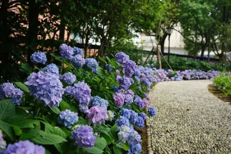 初夏,公园里的绣球花开得正盛,对许多感慨错过了今年春色的居民而言,充满魅力。