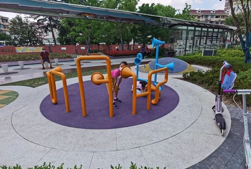 “以前都站着等孩子,现在有坐的地方了。”陆阿姨说,离家门口四五分钟就有这么多有趣的设施,就连大人也舍不得走,带孩子玩一会儿再回家。