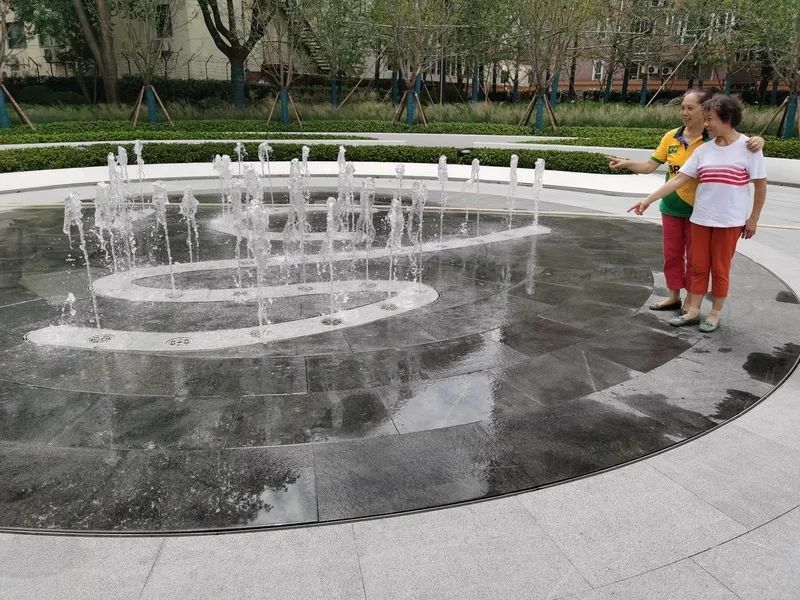在改建后的徐汇区乐山绿地,一座喷水池背后的巧思让乐山六七村的居民方贵华竖起了大拇指。
