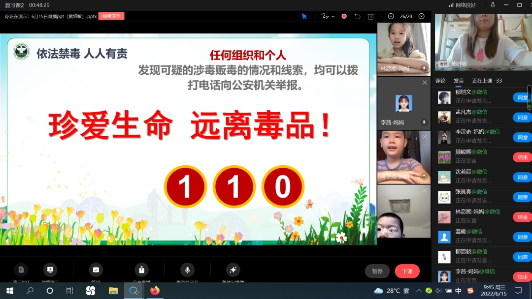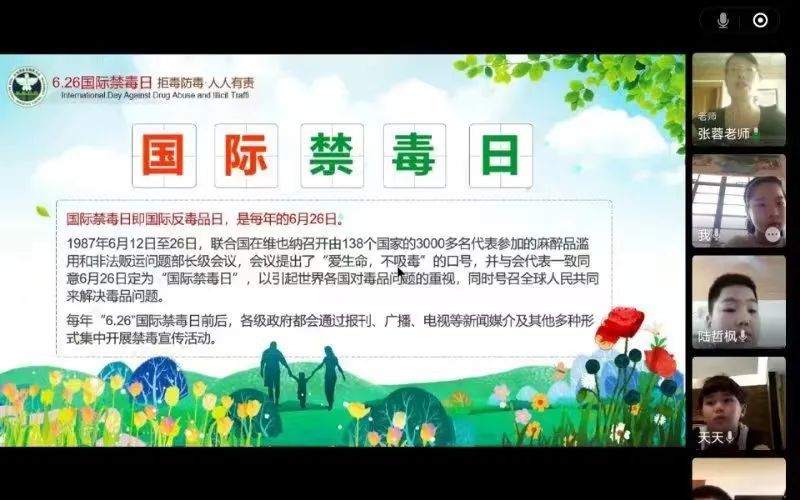 活动中,各班开展了“健康人生,绿色无毒”主题班会,老师向全班全面普及毒品防范知识,教育培养学生形成“珍爱生命、远离毒品”、“健康人生、绿色无毒”的理念。通过班会的学习,同学们对于毒品的危害有了一个深入全面的了解,从毒品的起源危害以及传播范围途径,加深了防范毒品的能力。