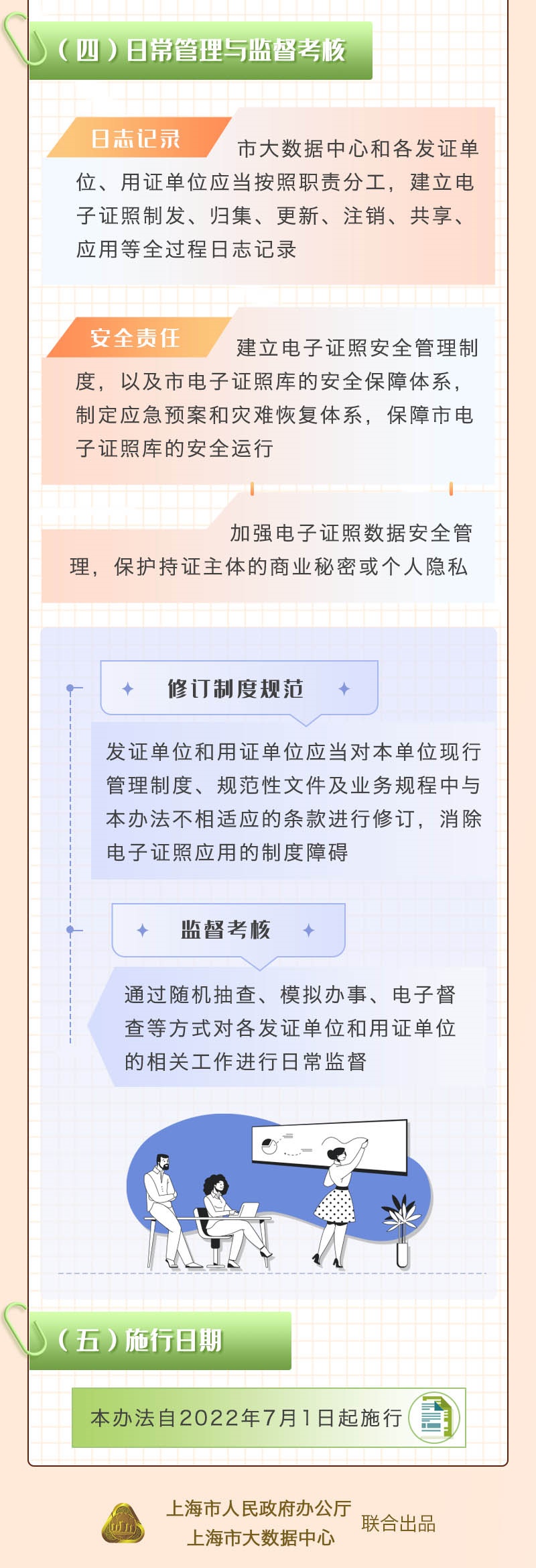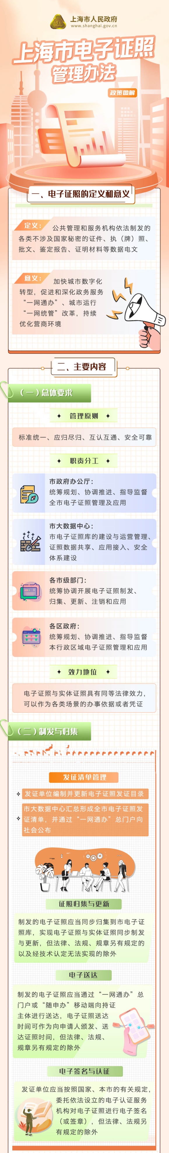 《上海市电子证照管理办法》发布,明确了电子证照的制发和归集、应用与服务、日常管理与监督考核等内容。该办法自7月1日起施行。图解详见↓