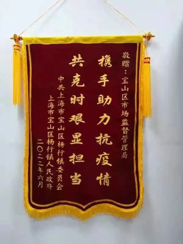 近日,宝山区市场监管局收到杨行镇党委、镇政府送来的“携手助力抗疫情、共克时艰显担当”的锦旗,对区市场监管局在疫情防控最吃劲的阶段,选派党员志愿者突击队支援街镇抗疫表示感谢。大场所、刘行所等基层市场所也纷纷收到辖区经营者送来的锦旗,对监管干部在疫情防控和复工复产期间给予的帮助和指导表示感谢。
