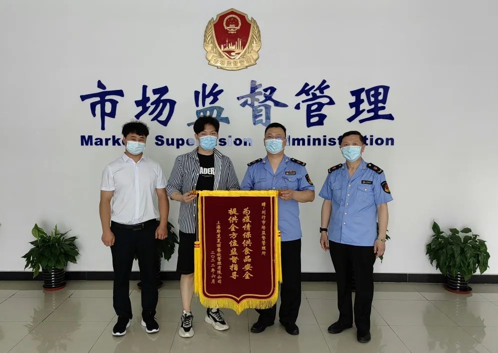 耶里夏丽(正大乐城店)送来了一面锦旗,对刘行所执法人员在封控管理期间为疫情保供食品安全提供的全方位监督指导表示感谢。