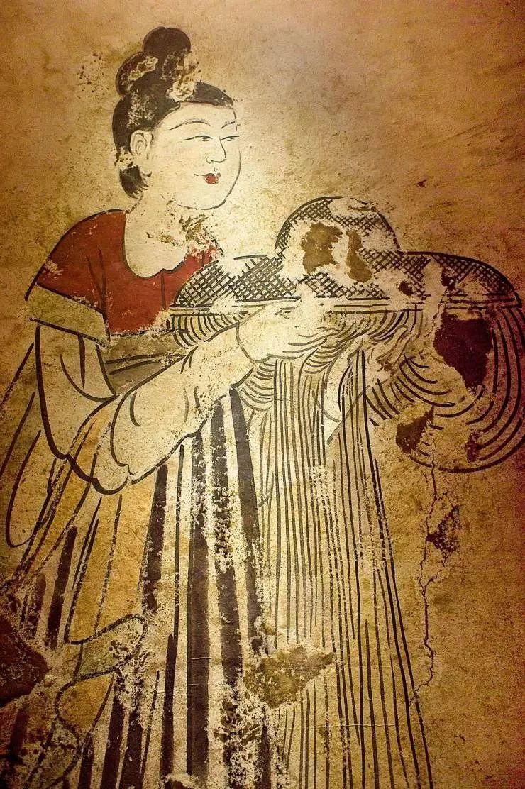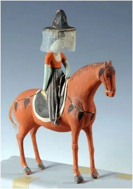 1974年出土的《捧帷帽侍女图》壁画中,一位侍女为自己的女主人捧着一套帷帽,帷帽同样有遮蔽面部的作用