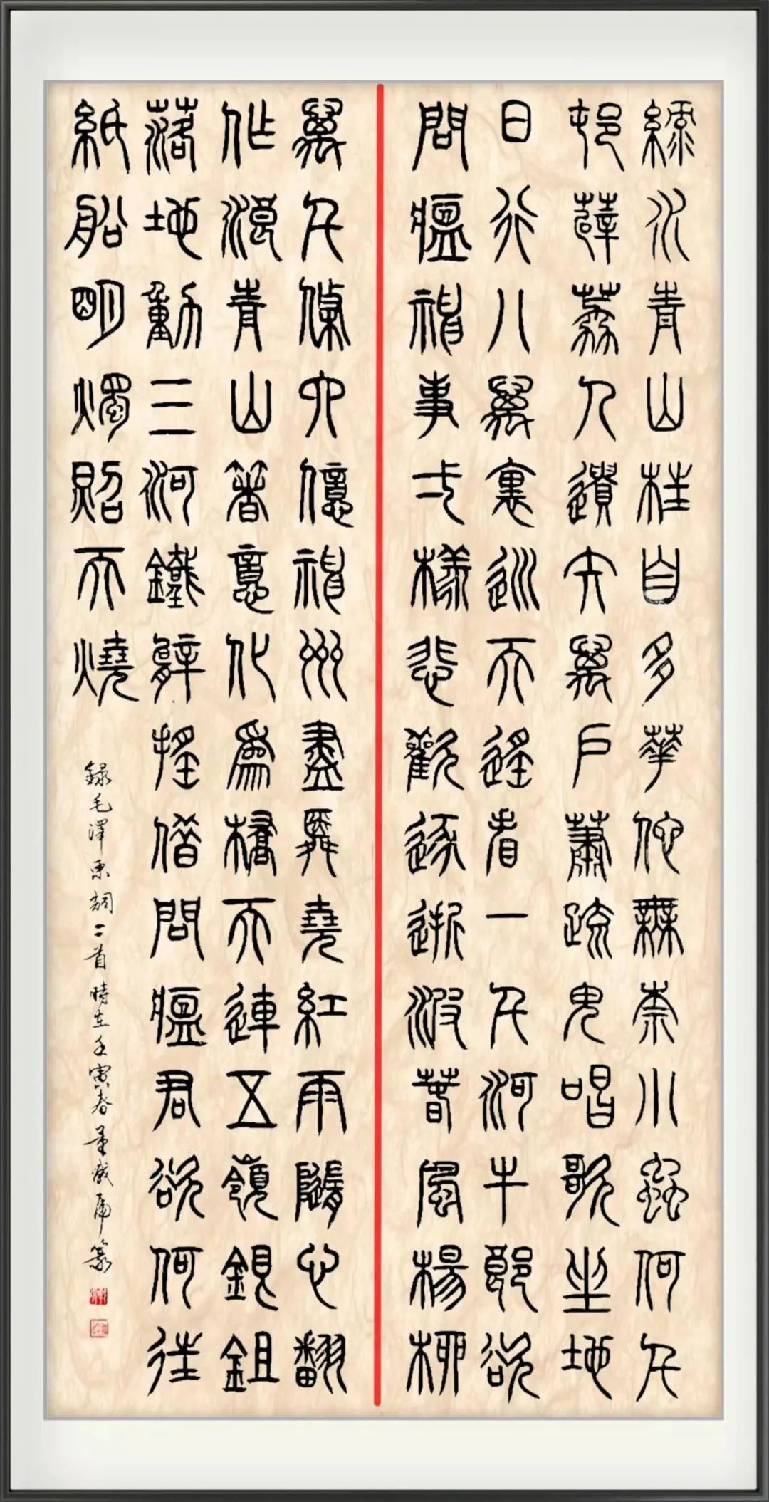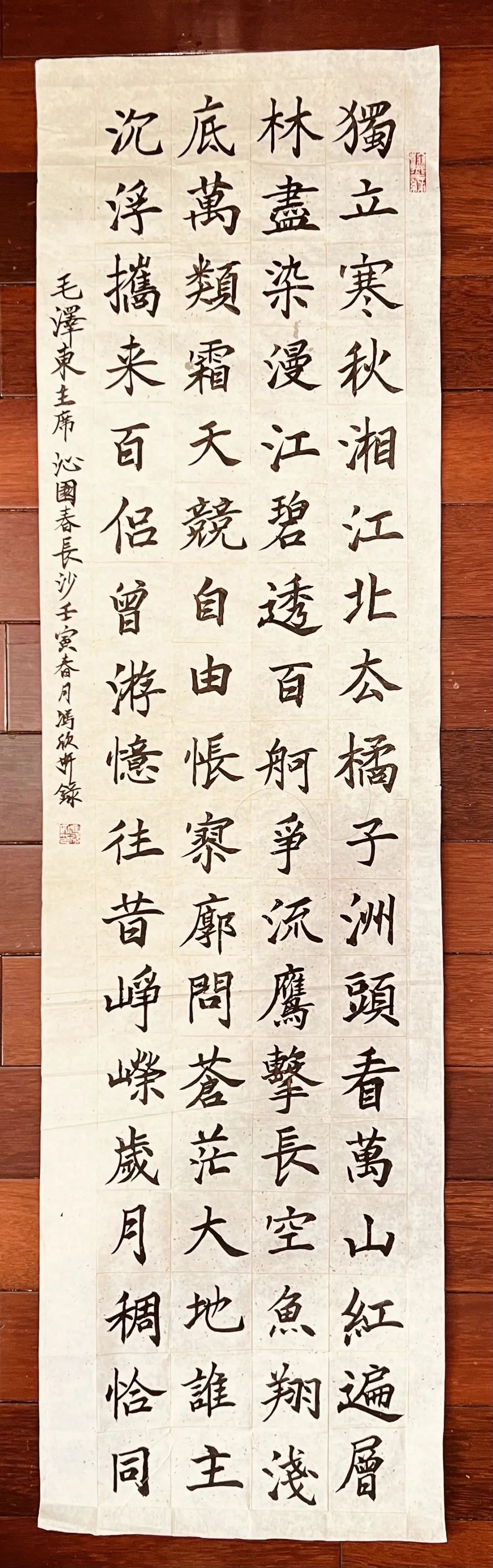 独立寒秋,湘江北去,橘子洲头。看万山红遍,层林尽染;漫江碧透,百舸争流。鹰击长空,鱼翔浅底,万类霜天竞自由。怅寥廓,问苍茫大地,谁主沉浮?