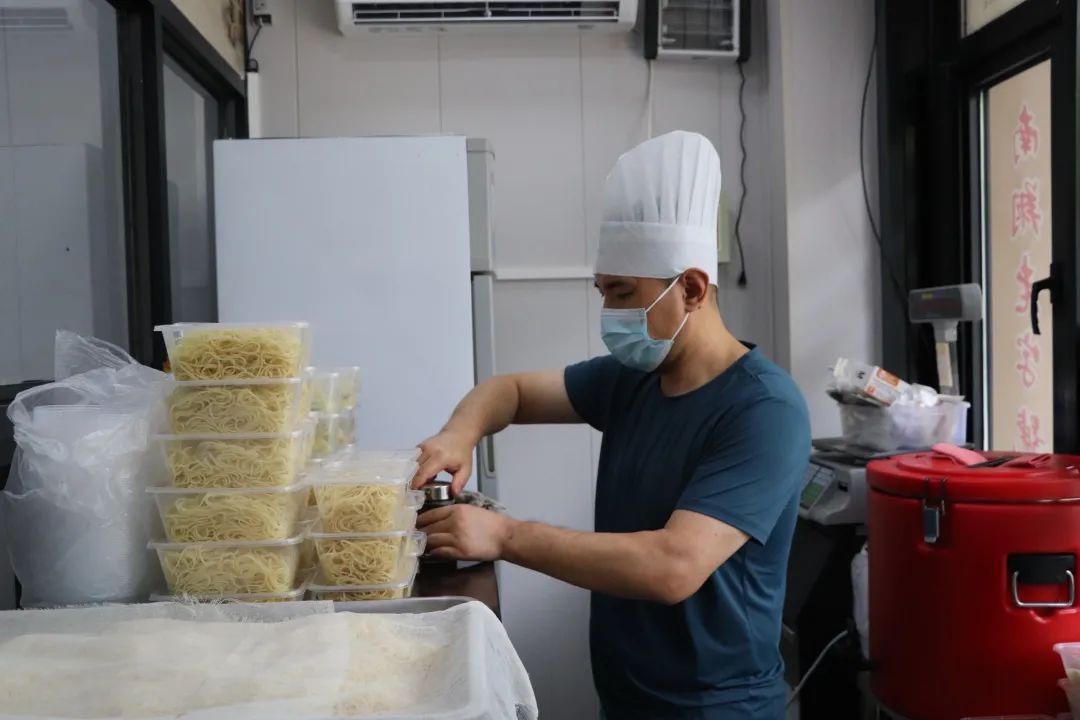 市民蒲先生在松鹤邨面馆打包了两份冷面,准备带回家和女儿一起吃,“我一到夏天就喜欢吃冷面,香而不腻,非常开胃,现在我女儿也很喜欢吃。”