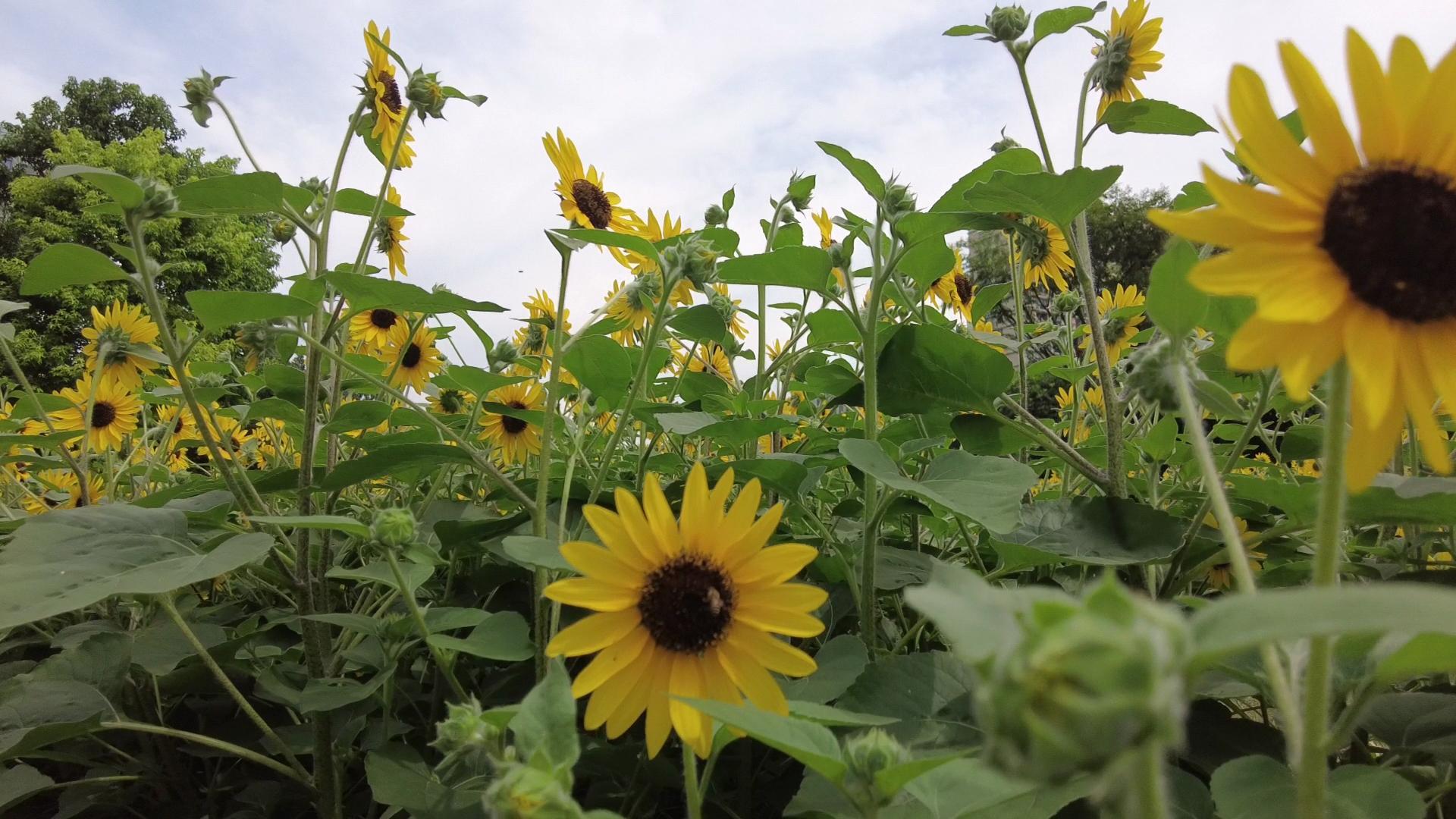 进入盛夏季节,在南园滨江绿地,金灿灿的向日葵,正迎着阳光怒放,与蓝天白云交相辉映,形成一片金黄色的花的海洋。蝴蝶、蜜蜂,飞舞在向日葵丛中,一番生机勃勃的景象。