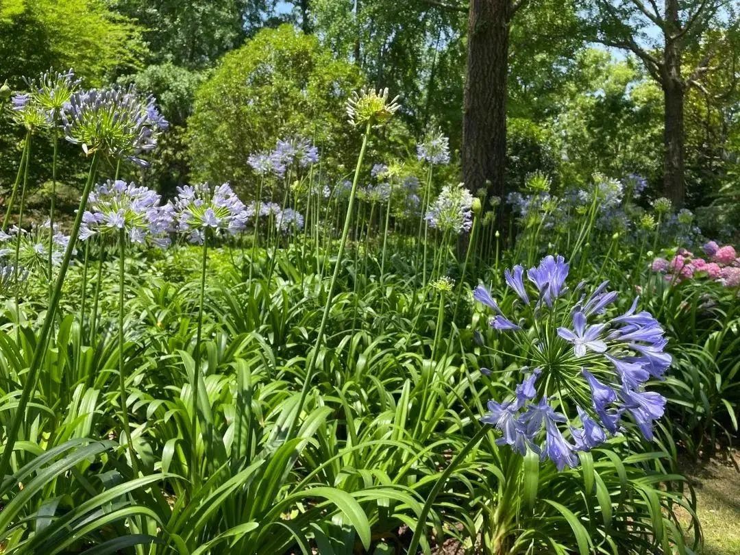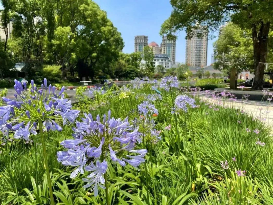百子莲浓绿光亮,花型秀丽。进入盛放季后,百子莲清新淡雅的紫色将太平桥公园点缀得十分秀丽。