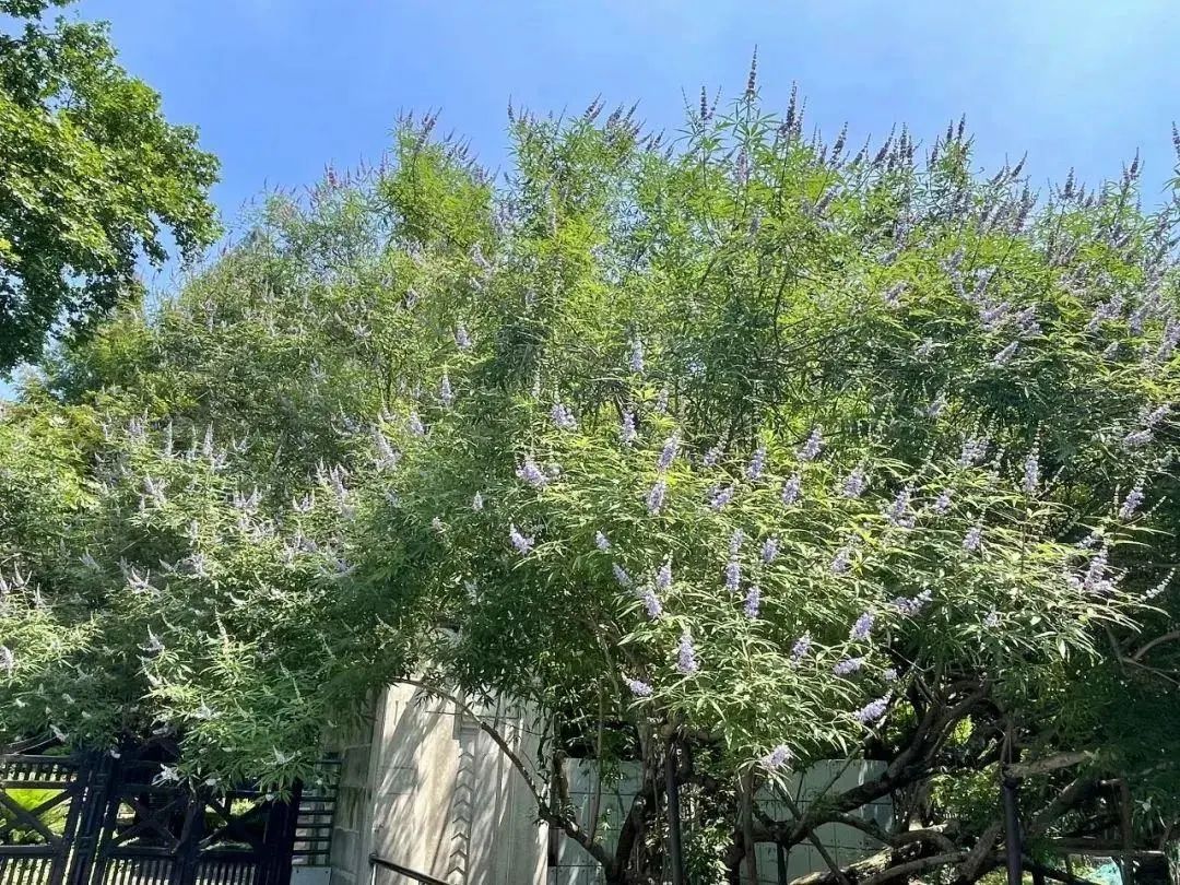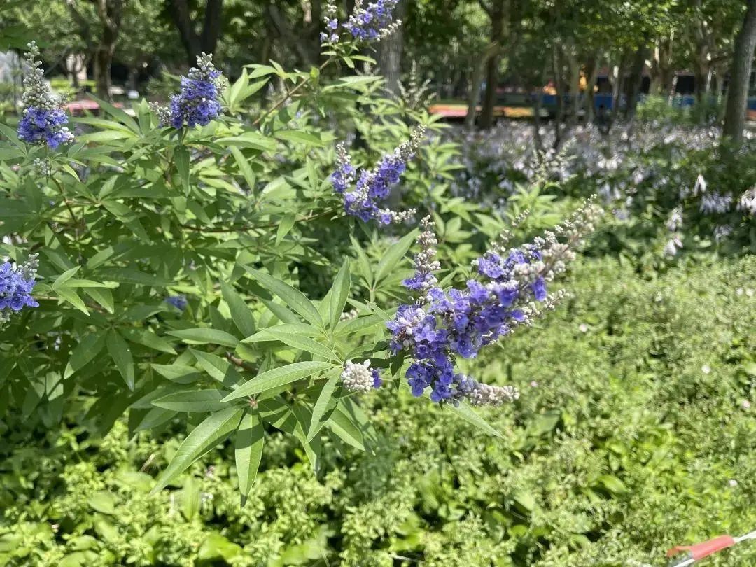 近日,复兴公园迎来了黄荆的盛花期,紫色的穗状花絮挂满枝头,花香淡雅,盛装迎客。
