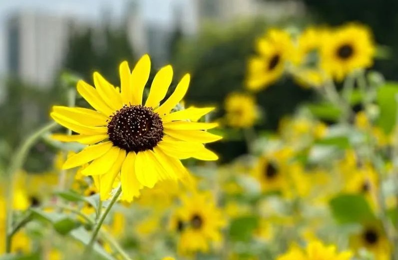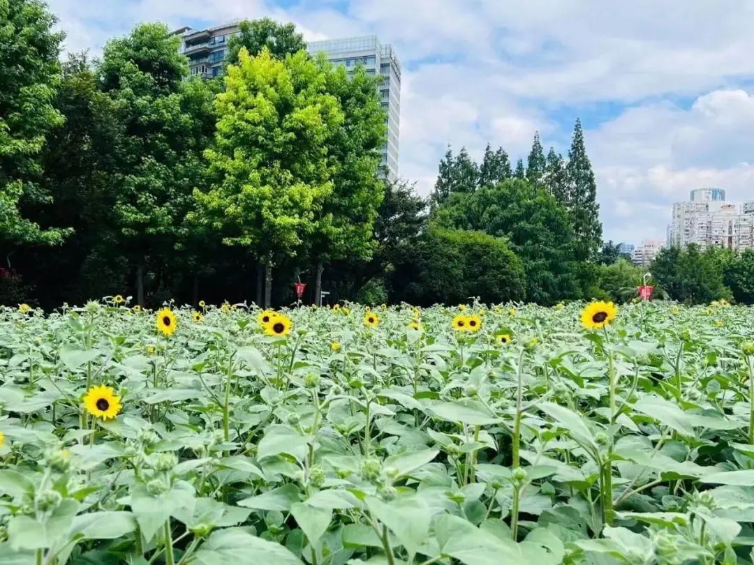 6月底至7月,南园滨江绿地成了盛夏最靓丽的风景线,金灿灿的向日葵迎着烈日洒下的光辉傲然怒放,与蓝天交相辉映形成一片金黄色的花海。