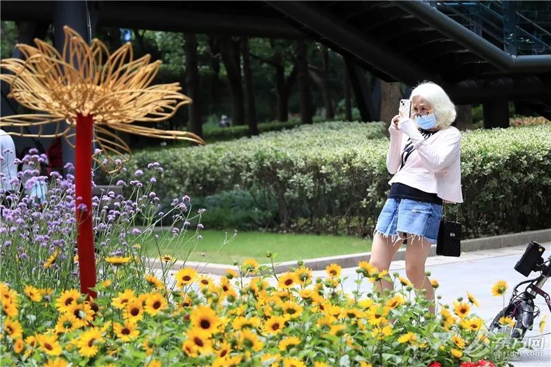 在漕溪路、肇嘉浜路沿线,同样可以欣赏到色彩缤纷的绿化“打卡点”。徐汇区绿化部门介绍,通过选用象征团结的八仙花、积极向上的向日葵等品种,展现在党精神引领下上海万众一心抗击疫情的积极向上面貌,并选用一些色彩缤纷的植物让市民们感受生活的美好,使得市民们在疫情防控常态化后在身边公园绿地就能转角遇到美,也给徐汇街头增色添彩。