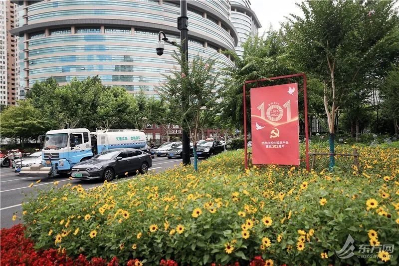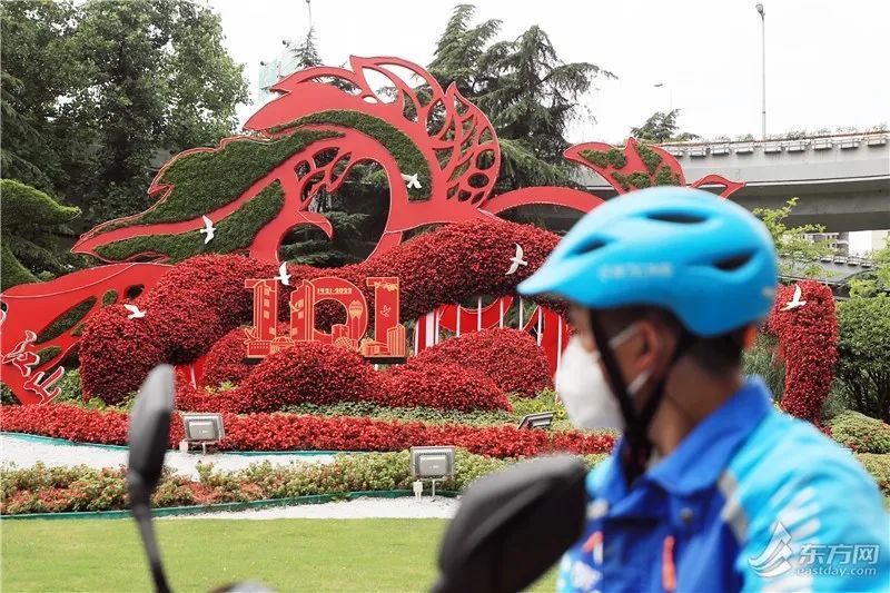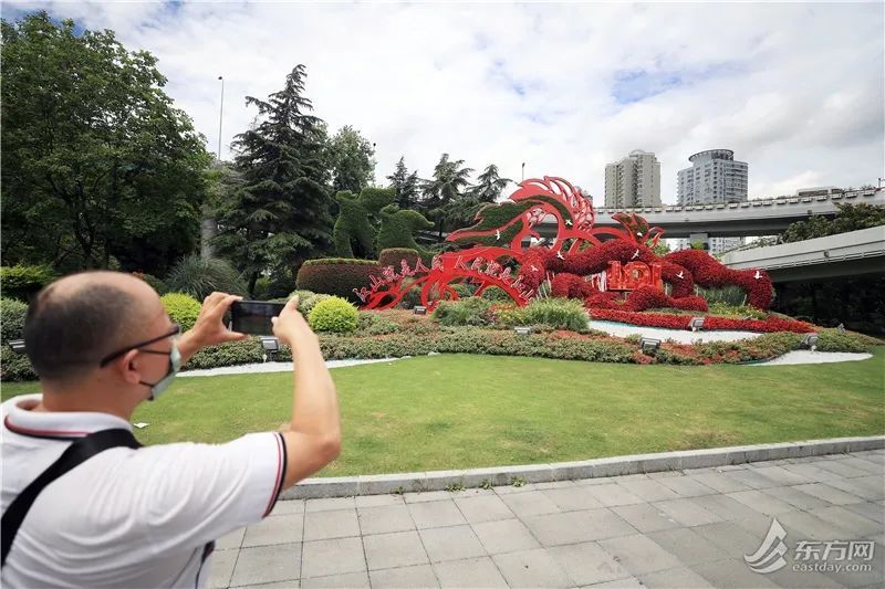 为庆祝7月1日党的生日,徐汇区绿化部门以“新征程新气象,花开迎盛会”主题,对重点道路沿线和主题景点进行了绿化景观布置。