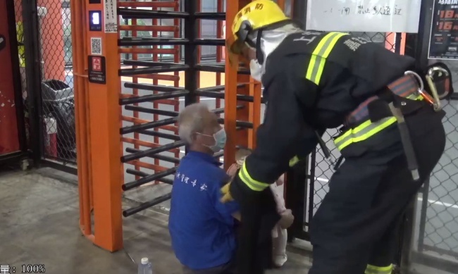 考虑到小女孩脖子比较脆弱,消防员拿来衣物垫在脖子周围,防止金属屑掉落,同时一边让王先生抱住小女孩并安抚她不要乱动,一边用扩张器施救,最终成功将小女孩救出。