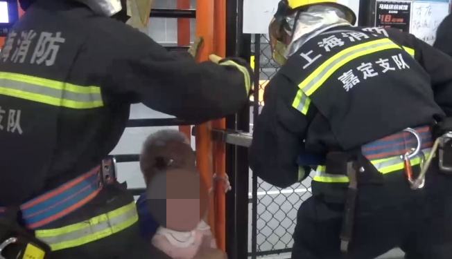 消防队员赶到现场时,小女孩头横卡在两根栏杆中间,虽然不停地哭闹,但意识清醒。由于旋转门周围人来人往,为避免人员聚集,引起小女孩的紧张情绪,消防队员立即拉起了警戒线。