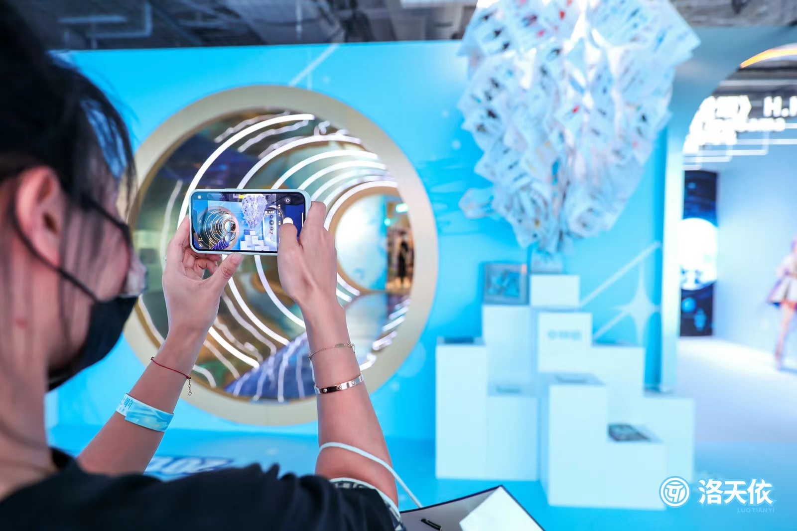 此外,互动体验区还推出了节拍游戏、免费扭蛋、洛天依经典立体造型打卡、数字艺术品展示等创意满满的互动内容,更有每周限量开放的特别活动等。