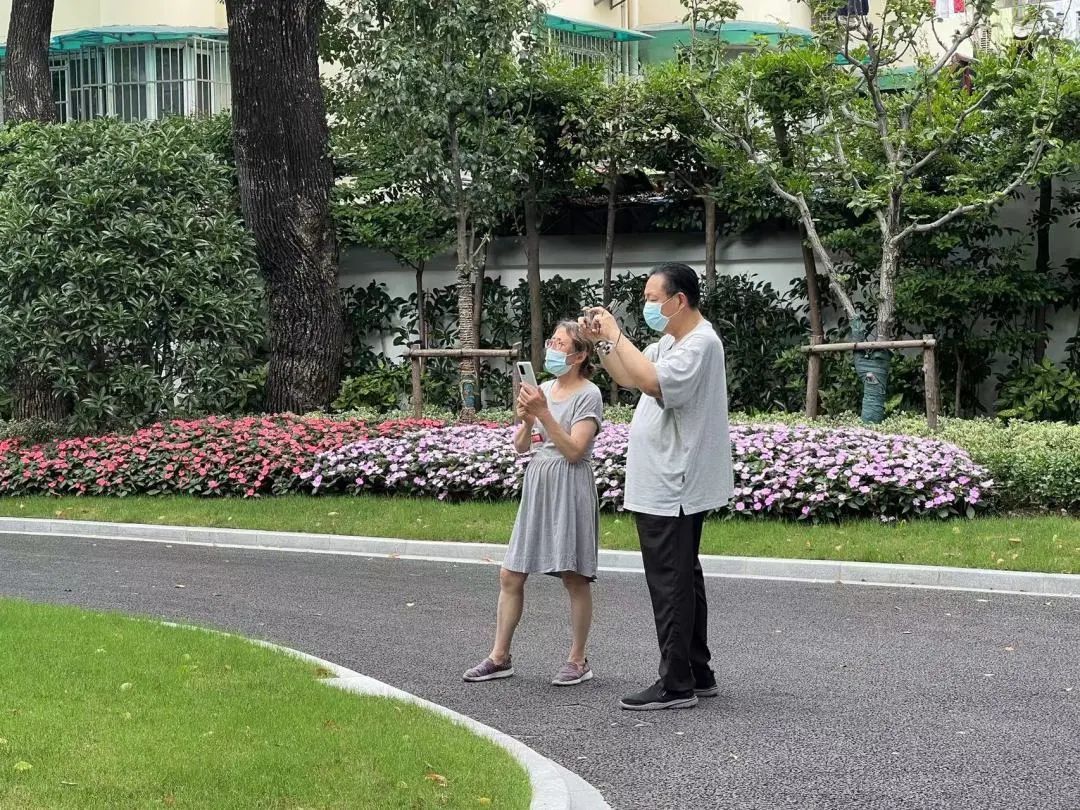 正对着公园大门,月季、向日葵等花卉布置而成的主题景观令人心生愉悦,走进园区的游客都忍不住举起手机留下美照。小道边,随处可见的草花成片开放,绿茵草坪生机蓬勃,院内一草一木显然在公园封闭期间也都得到了极好的照料。公园管理方介绍,为了更好地迎接游客的回归,除了日常养护外,在重新开园前,公园还特地对绿植和草花进行了更新和修整,才拥有了如此盛世美颜。