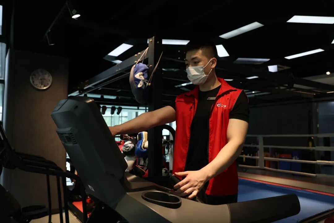 据介绍,为了严格落实防疫政策,店方从预约环节严格控制每小时50名以下的在场人数。“顾客需要提前预约,然后到店扫场所码或数字哨兵,查验72小时内健康码、测量体温和进行手部消毒后,方可进入店内健身锻炼。”宫国静表示,每层楼都安排工作人员及时提醒顾客正确佩戴口罩,不要聚集健身。