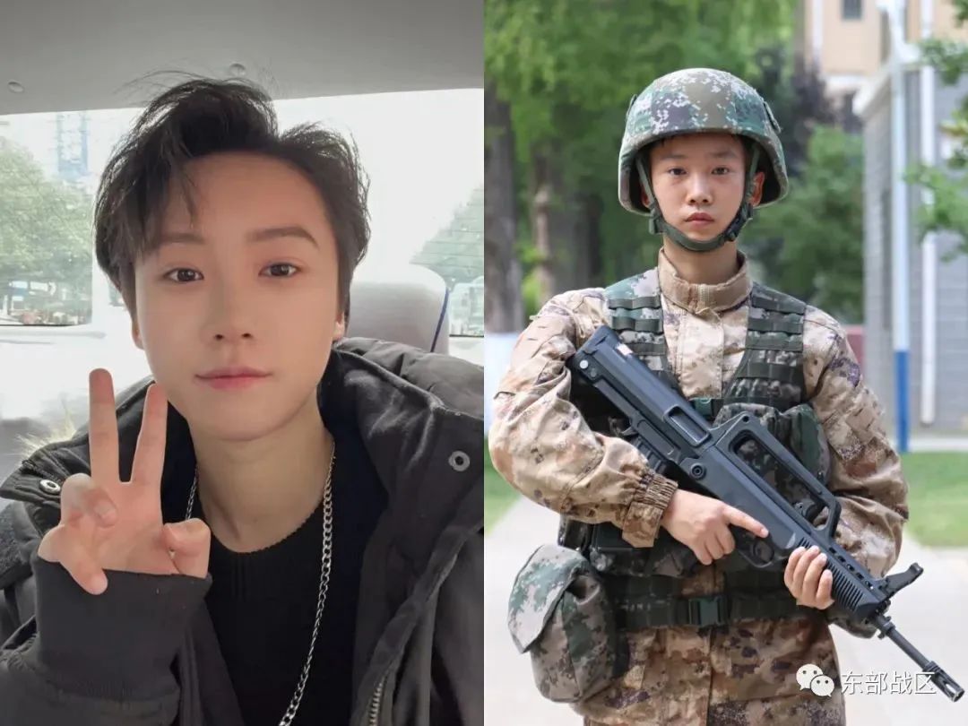 3名女新兵合影,左边是徐依然