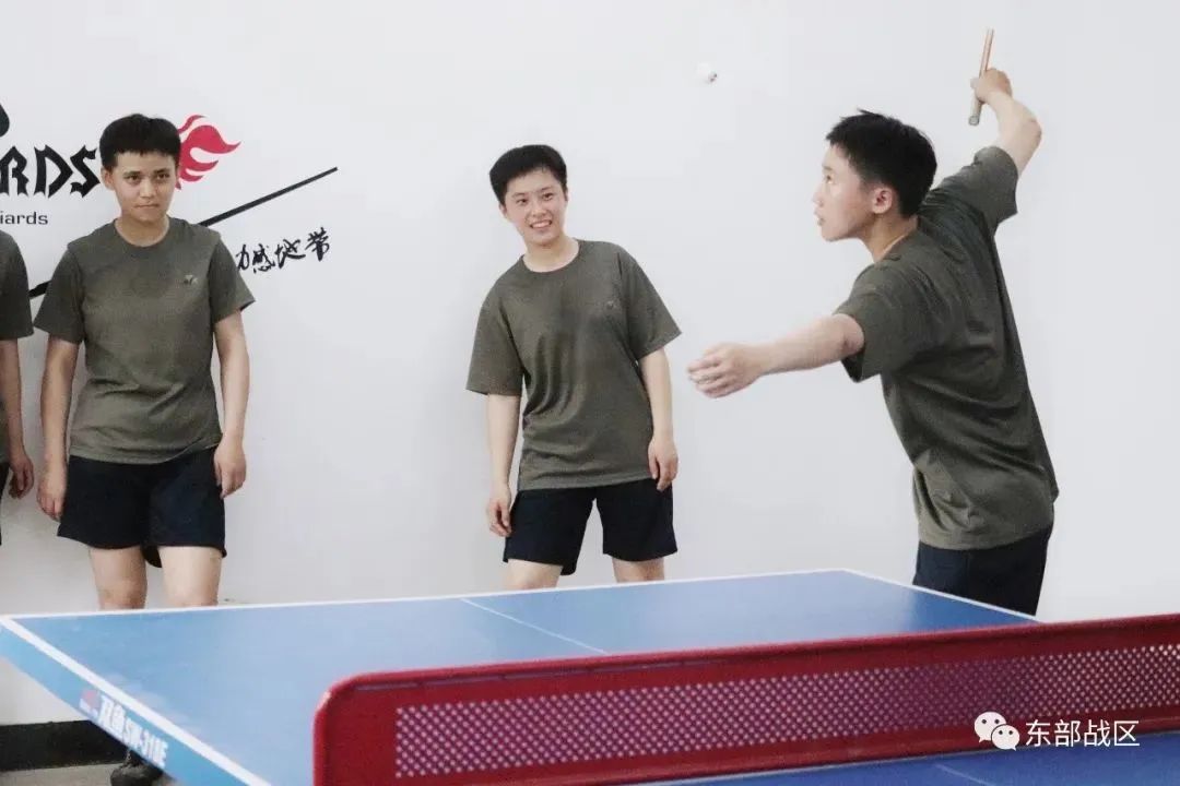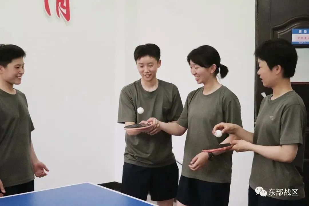“乒乓球挥拍要轻盈,身体要灵活……”新训女兵连乒乓球室内掌声阵阵,女新兵徐依然的“乒乓球小课堂”开课了。她向战友详细讲解乒乓球的打法、技巧和规则,大家直呼过瘾。