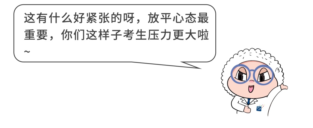 大考当前,不免会有身体紧张,情绪失控,这是人类自然的应对方式。当我们感知到太过于紧张时,肯定自己,聚焦当下,不要放任负面的想法“顺流而下”,一定可以平稳度过考试。