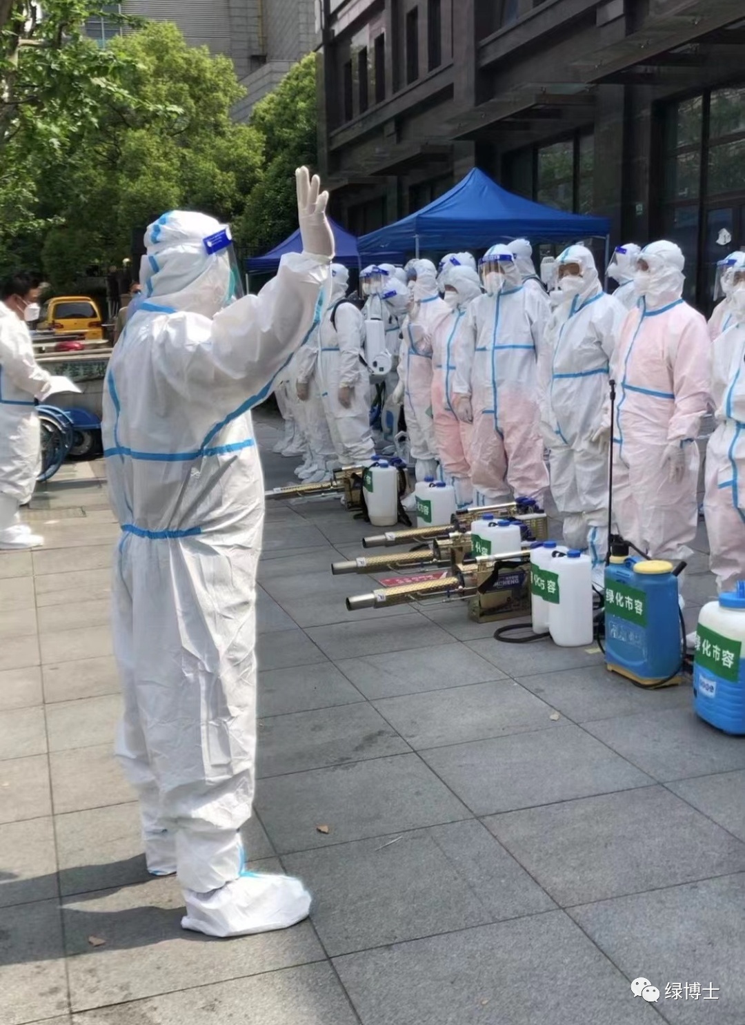 疫情期间张博和周围的绿化工作者们根据指挥安排做好防疫和消杀工作,保障绿化工作顺利推进,以确保市民们走出家门时能看到美好如常的绿化景观。