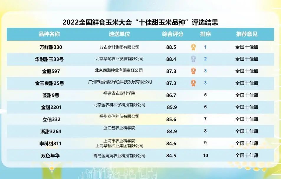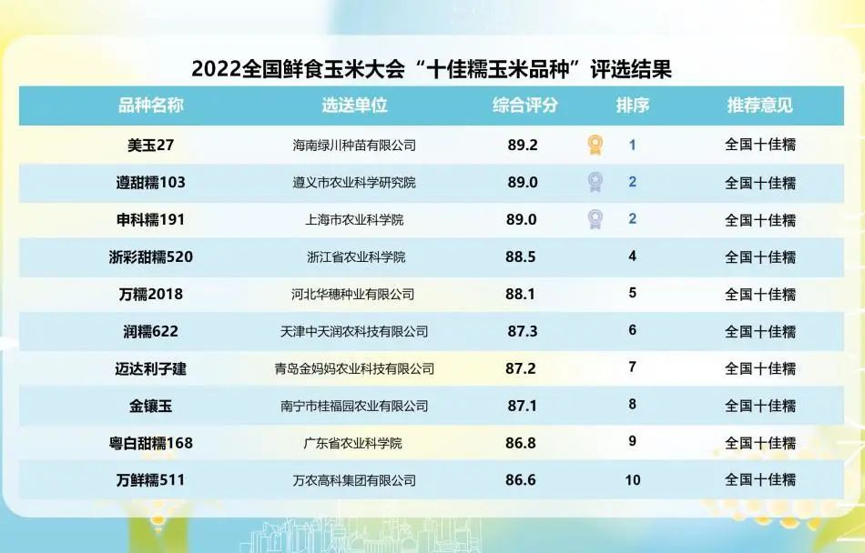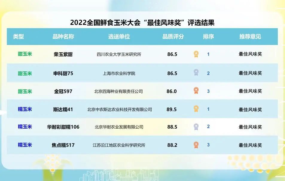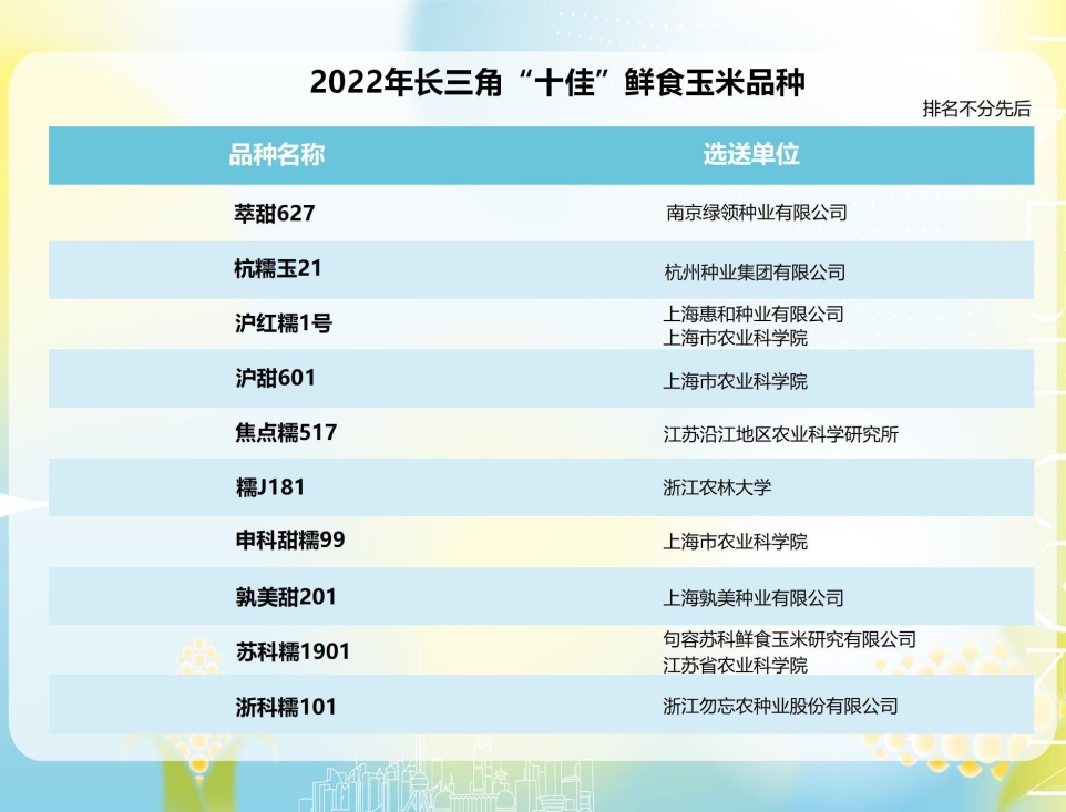 这些品种在今年3月下旬由市农科院专家在基地播种,大会正值采收期,专家们在田间对这些代表全国鲜食玉米的最高育种水平的品种的田间抗性、产量、外观商品性进行专业点评、打分,并通过现场品鉴,对这些品种的蒸煮品尝适口性等进行评价,从而评选出“全国十佳甜玉米”“全国十佳糯玉米”“最佳风味奖”,并同时推出长三角“十佳”鲜食玉米品种。其中,来自上海的“申科甜811”“申科糯191”分别入选全国十佳甜、糯玉米,“申科甜75”获甜玉米组最佳风味奖。通过本次全国鲜食玉米大会宣传推介优良品种,将有力推动鲜食玉米品种的更新换代。