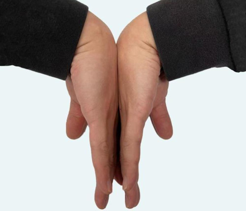 屈肘、前臂上举,双腕同时屈曲90°。当拇指、食指、中指和无名指外侧,持续出现疼痛、麻木、灼烧等感觉时,可能就是“鼠标手”。