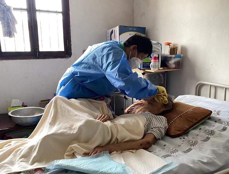 负责叶榭镇长护险服务的护理机构——翔玮社区服务中心副主任顾蕾告诉记者,护理服务人员每次服务前,都会提前了解服务对象所在小区、楼道、家庭的封控情况,确认无异常后再上门服务。“服务过程中,我们要求护理人员全程佩戴N95医用口罩、一次性手套以及必要的防护装备,同时备好消毒液等防护物资,入户及服务前后做好充分清洁、消杀。”此外,服务之前还需查看老人72小时内核酸阴性报告,测量老人体温并观察健康状况,若发现老人有任何核酸或抗原检测异常、体温异常、发热咳嗽等症状就及时停止服务,并第一时间报知护理服务机构。