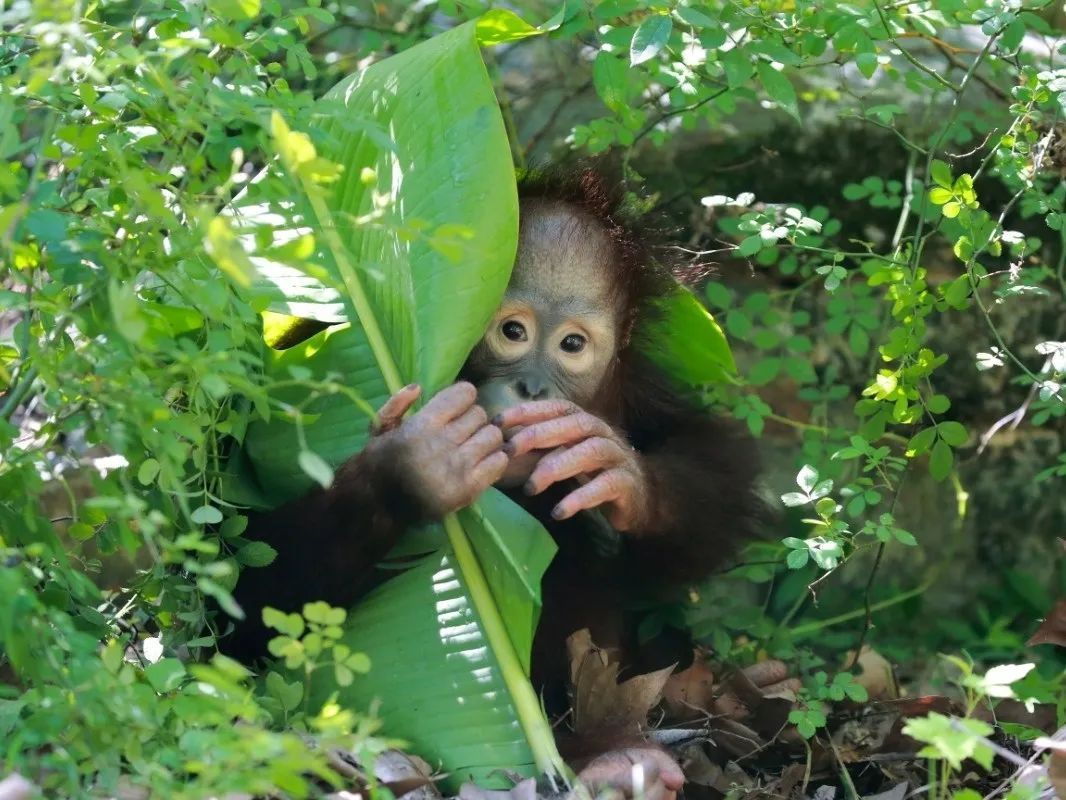 对于体型较小的黑妞来说,芭蕉叶可食用可遮阳可凹造型,是夏日出行的必备单品。