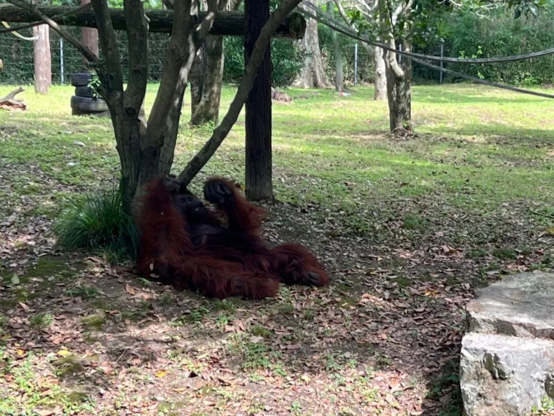 夏日的暴晒可是分分钟受不了,聪明的猩猩也会在夏日调整策略。如果大家来到场地边时,一时间没有找到猩猩,不要着急,不妨在大树下、栖架下、瀑布边探寻它们的踪迹。