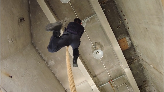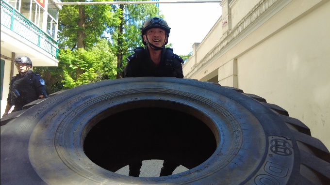 重达300斤的轮胎在特警队员一次又一次的翻动下,不断与滚烫的地面发出“砰砰”的碰撞声;通过不断摇晃的麻绳,特警队员仅凭双手快速爬到顶端。