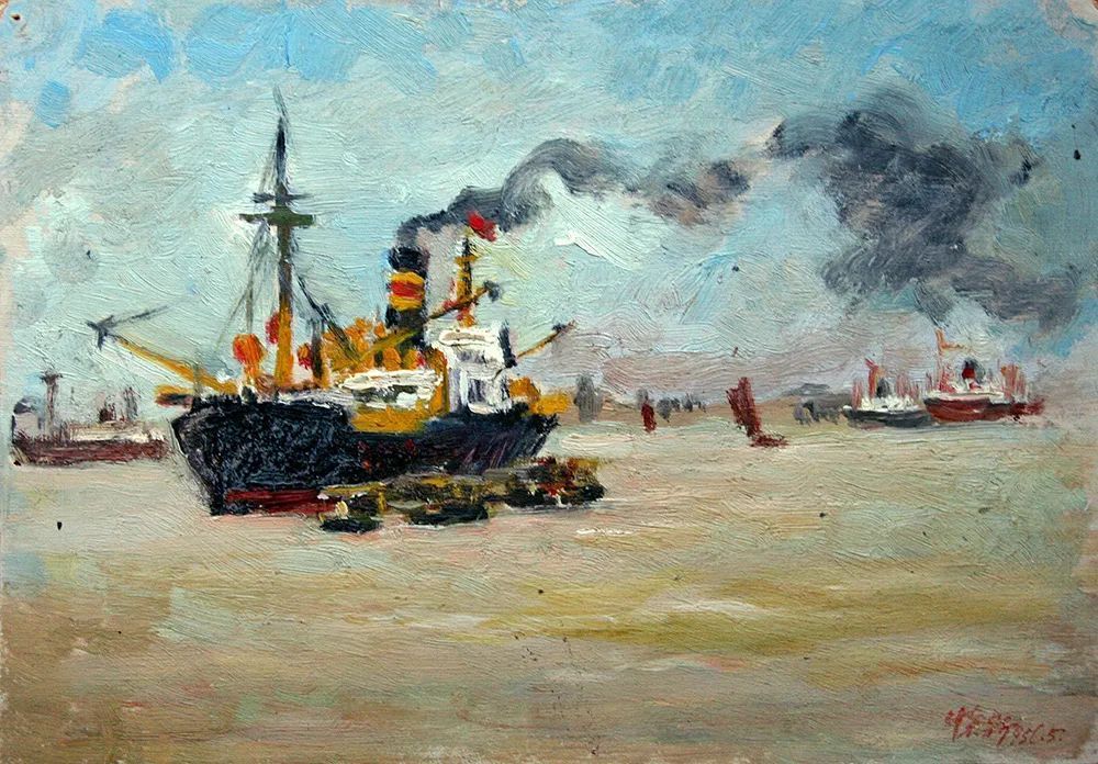 朱怀新《小火轮》22x16厘米 油画 1956年