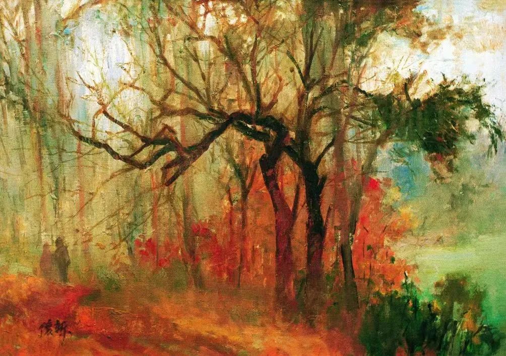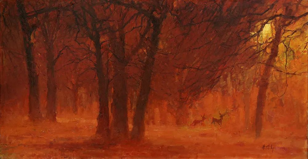 (下)朱怀新《呦呦鹿鸣》100×56厘米 油画 1980年代