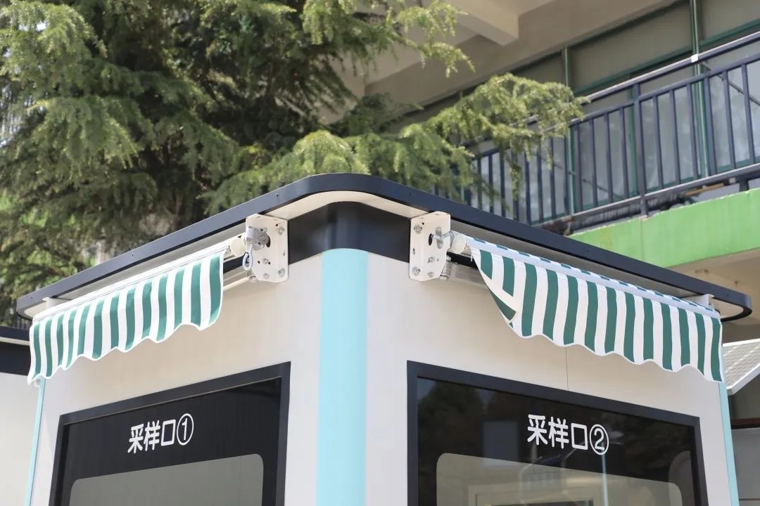采样亭外部还设有伸缩式遮阳雨棚,美观实用,专门为被检儿童设计的儿童采样辅助凳,避免了“身高”的尴尬。采样人员隔绝于工作站内,零接触采样,正压新风系统、臭氧消毒系统和空气过滤系统,保障环境安全、空气清新。亭内配备冷暖空调、可升降座椅及置物台,为采样人员提供良好的工作环境。