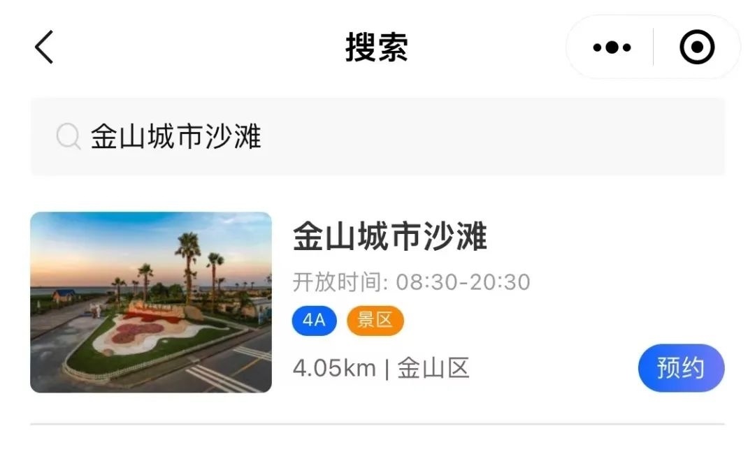 游客打开微信,搜索乐游上海公众号—一码畅游—场馆预约—搜金山城市沙滩进行预约,或者扫描场馆预约码进入小程序进行实名预约。