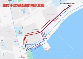 7月2日-8月28日的每个周末,金山城市沙滩提供免费短驳车服务,短驳线路及时刻表如下:(如图)