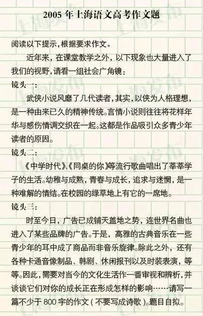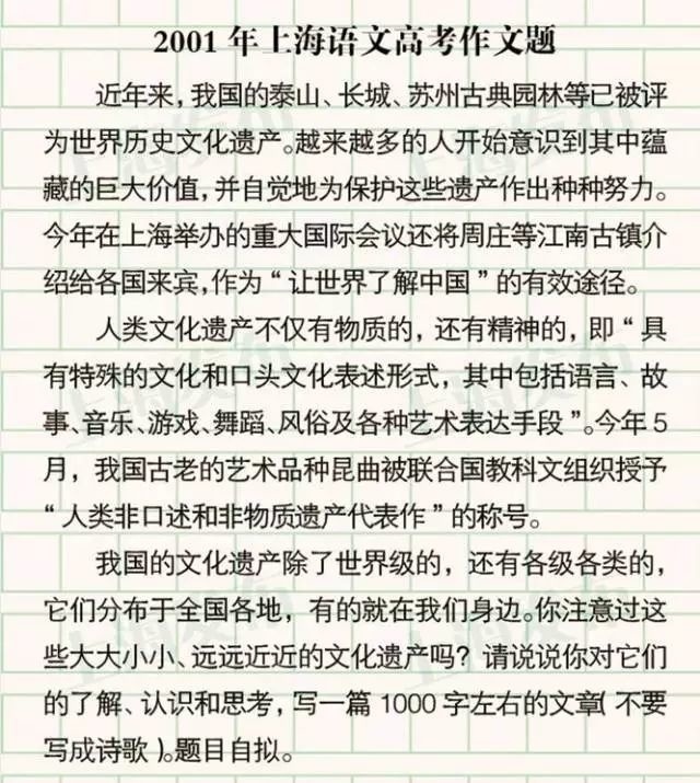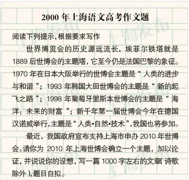 还记得你那一年的高考作文题吗?2000-2021年上海高考作文题附后↓