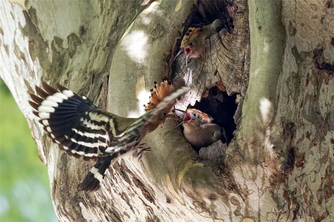随着近几年共青森林公园鸟嗜植物品种的增加、水体环境的改善,给鸟类提供了更好的栖息环境,近年来戴胜窝的数量也越发多了,每年都能看到一窝窝的雏鸟降生。种种举措和现象使得人们能够更亲近自然、了解自然,对社会形成良好的保护鸟类的氛围起到更加积极的作用。