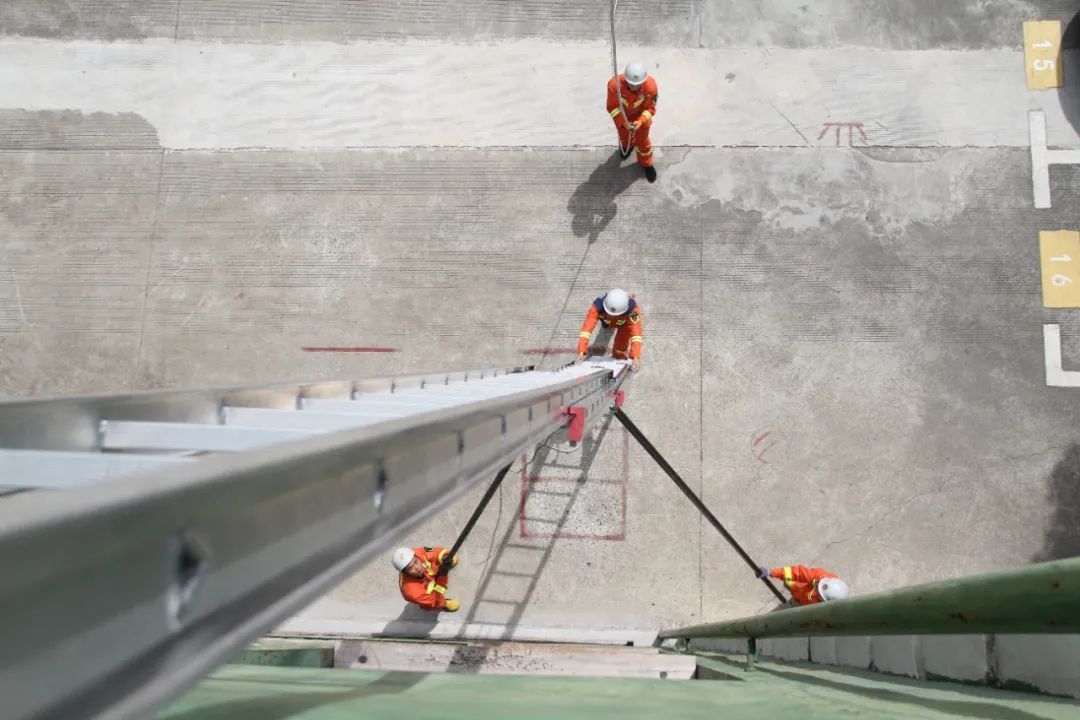 “我来消防队已经7年了,还记得7年前第一次接触这个项目时,我们用时需30秒左右。经历几年的磨炼,目前只需15、16秒,比之前快了一倍。”城南消防救援站特勤分队一班班长葛志远表示,他们肩上的责任,远比150斤的梯子要沉重,“在火场中,如果门打不开,我们可以架设15米拉梯,从窗户进入,以最快的速度将被困人员营救出来。”