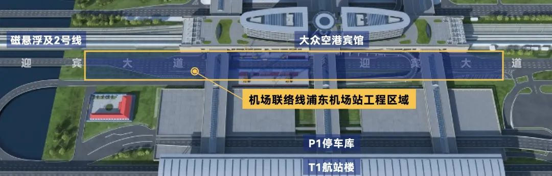 机场联络线浦东机场站位于浦东机场主进场交通干道迎宾大道下方,于2018年12月开工。机场联络线全场约68.9公里,沿线设置9座车站,机场联络线通车后,浦东、虹桥两大机场间的通行时间将缩短至40分钟内。机场联络线浦东机场站为地下二层结构,总建筑面积约为4.7万平方米。工程未来将与浦东机场T3航站楼轨交车站联通,进一步加强城市轨道交通网络与航空枢纽的衔接,增强综合交通枢纽服务长三角的功能,工程计划于2024年完工。