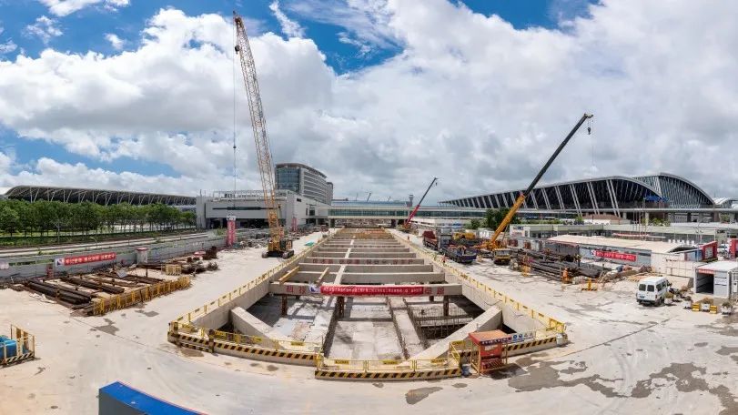 机场联络线浦东机场站工程是浦东机场三期扩建工程交通配套工程,也是浦东综合交通枢纽建设的重要组成部分。由于本次结构封顶的一区基坑深约24米,是目前浦东机场最大的深度基坑,而且紧邻磁悬浮和地铁2号线,施工时对轨道沉降位移控制极为严格。