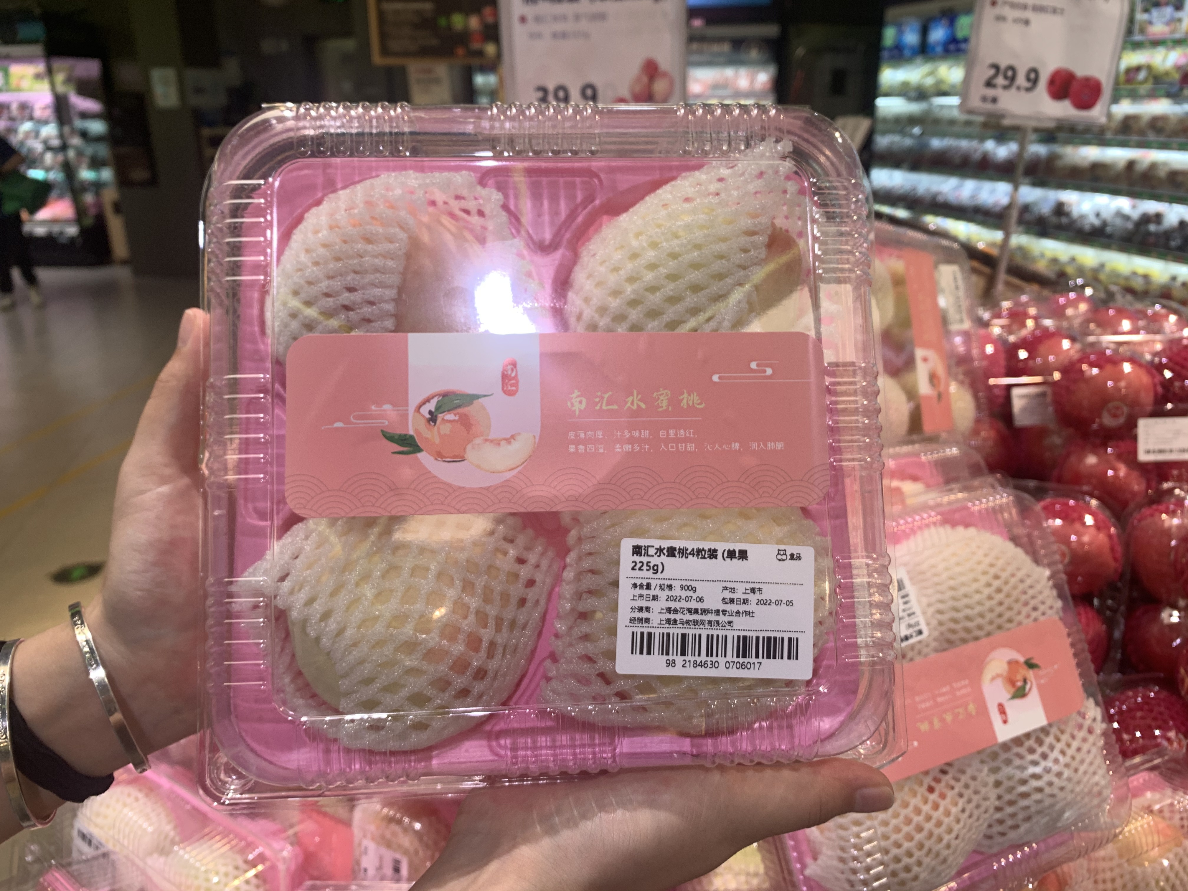 还有时令水果也是市民购买较多的。树上熟新疆吊干杏和南汇水蜜桃都属当季推出的品种。