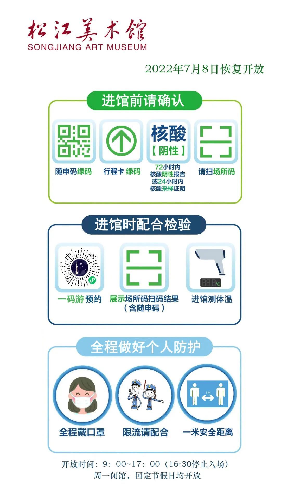 松江美术馆今天(7月8日)起正式恢复对外开放,开放时间为每日9:00-17:00(16:30停止入场),每周一闭馆(除国定假日外)。美术馆一楼至三楼(除布展期间)均对外正常开放。
