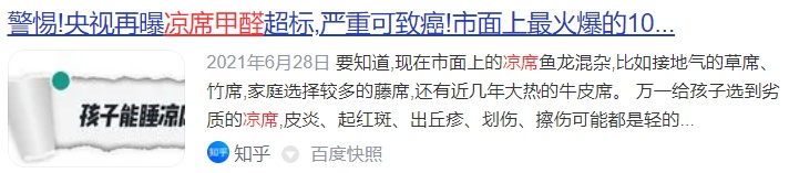 央视也不止一次报道过凉席的各种质量问题。