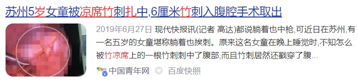 另外,竹席毛刺多,包边一旦破损,露出的竹片对孩子存在严重的安全威胁。