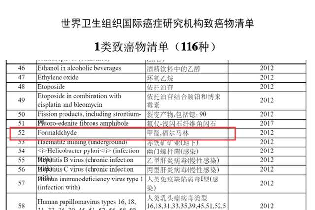 早在2004世界卫生组织国际癌症研究机构(IARC)就已经把甲醛上升为1类致癌物质。
