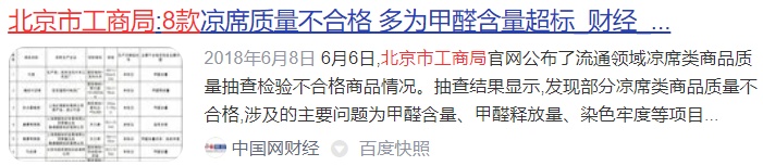 江苏省市场监管局曾连续3年抽检中,凉席合格率均不足50%;