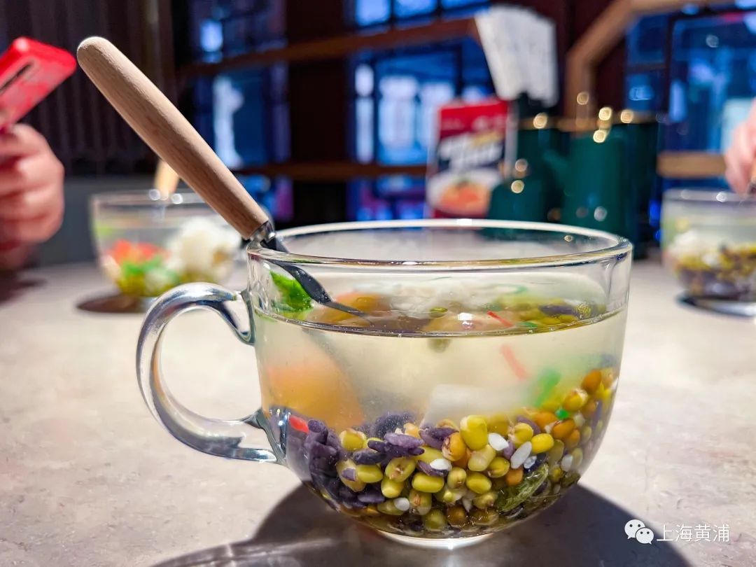 据店经理介绍,和传统上海绿豆汤要煮至软糯起沙不同,苏式绿豆汤更讲究多种原料形成的混合口感,从而带给食客更为丰富清爽的味蕾体验。