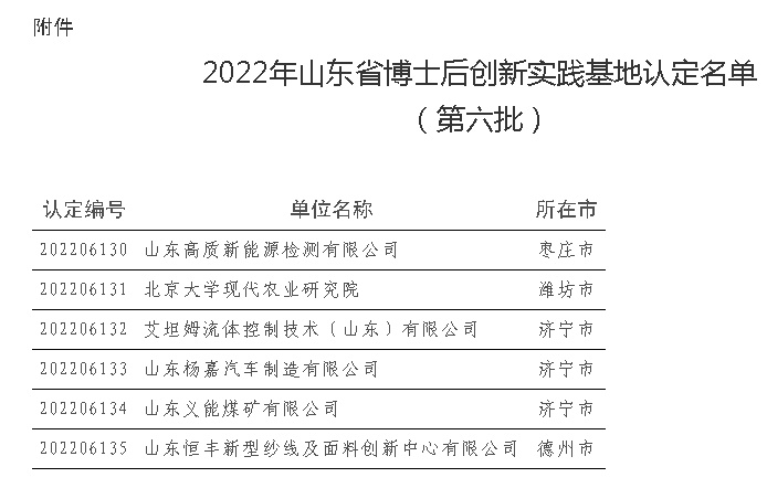 近日,山东省人力资源和社会保障厅印发《关于2022年山东省博士后创新实践基地认定名单的公告(第六批)》。